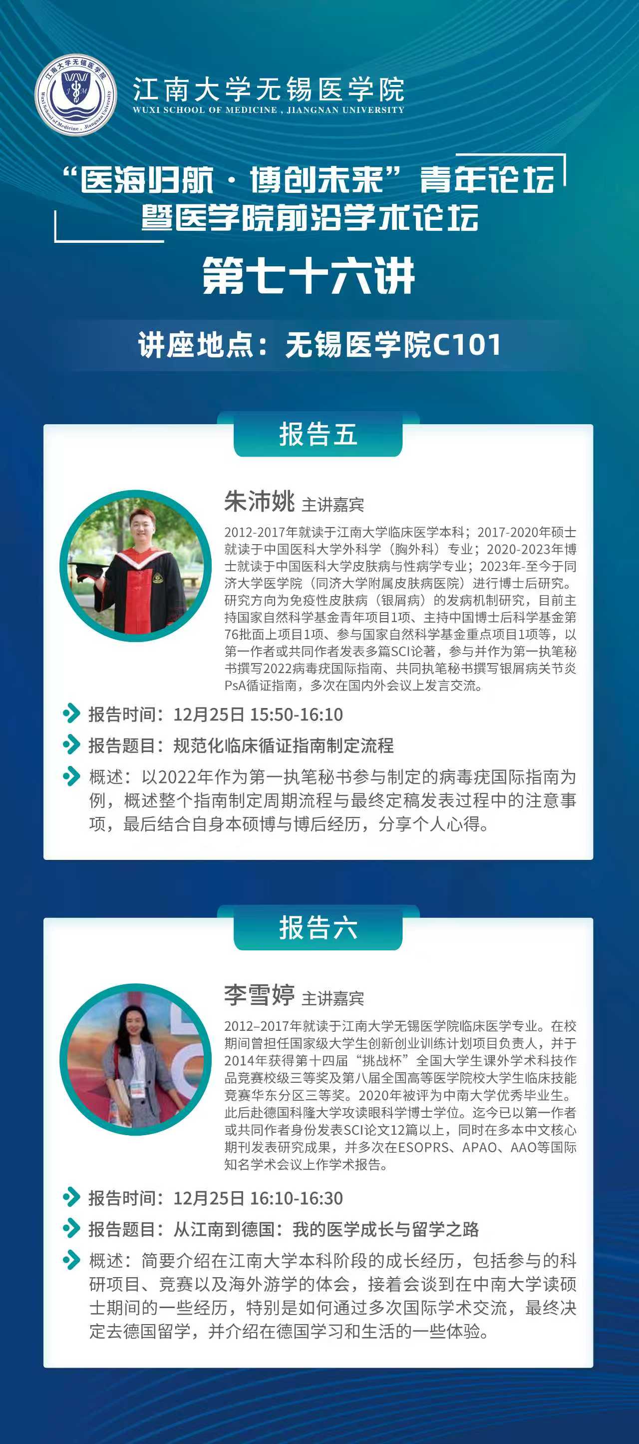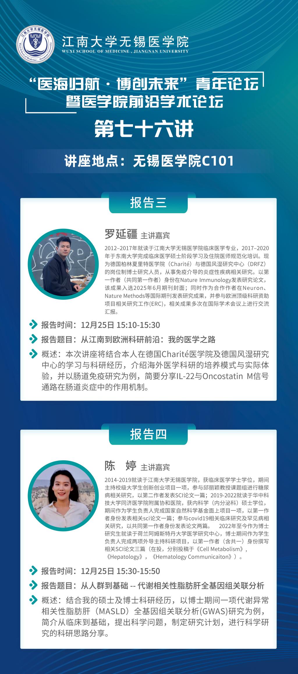 主讲嘉宾:江南大学无锡医学院临床医学历届校友