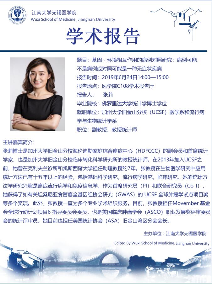 6月24日医学院学术报告——张莉:基因—环境相互作用的病例对照研究:病例可能不是病例或对照可能是一种无症状疾病