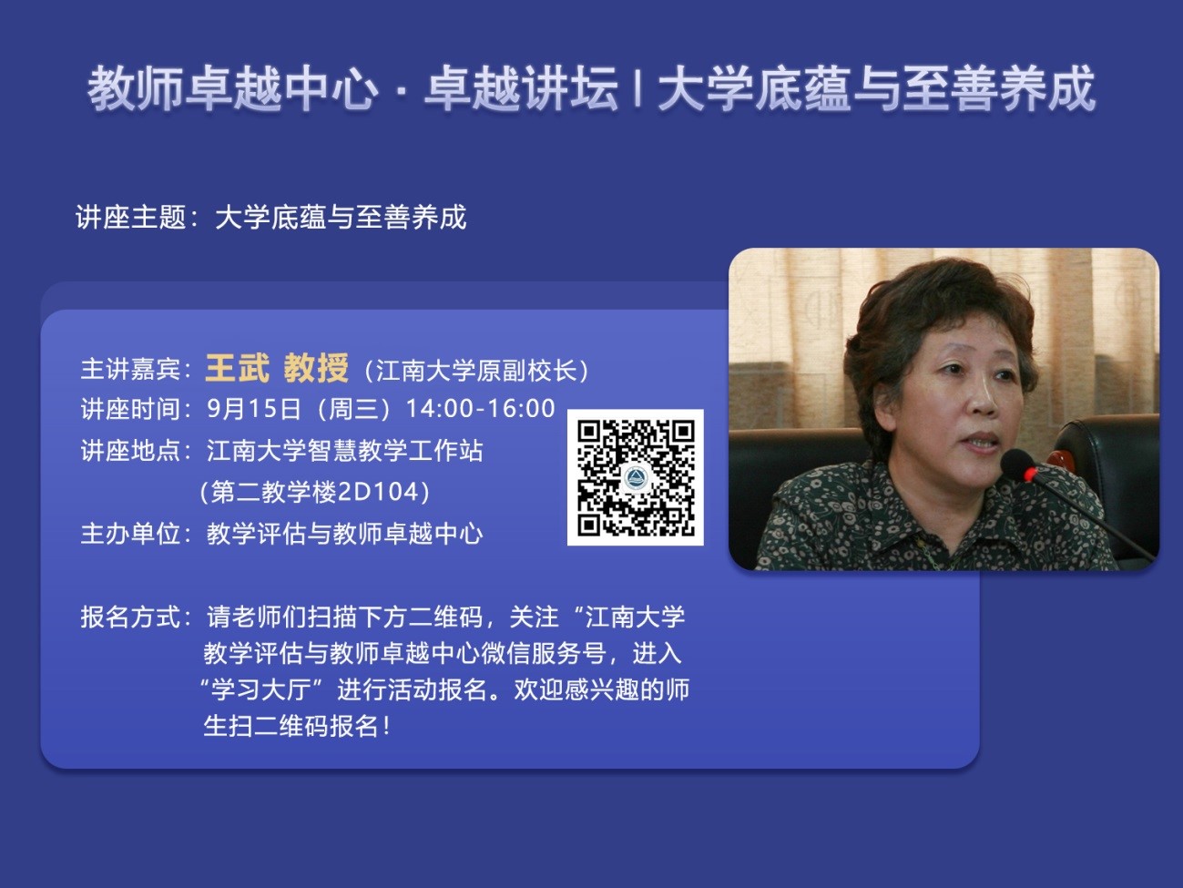 主讲嘉宾:王武教授(江南大学原副校长)