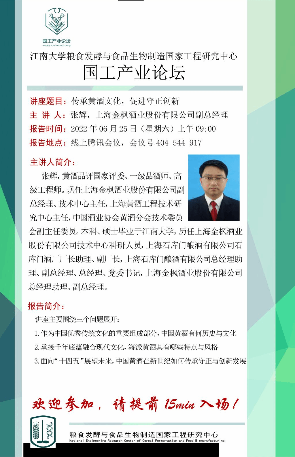 讲座题目:传承黄酒文化,促进守正创新