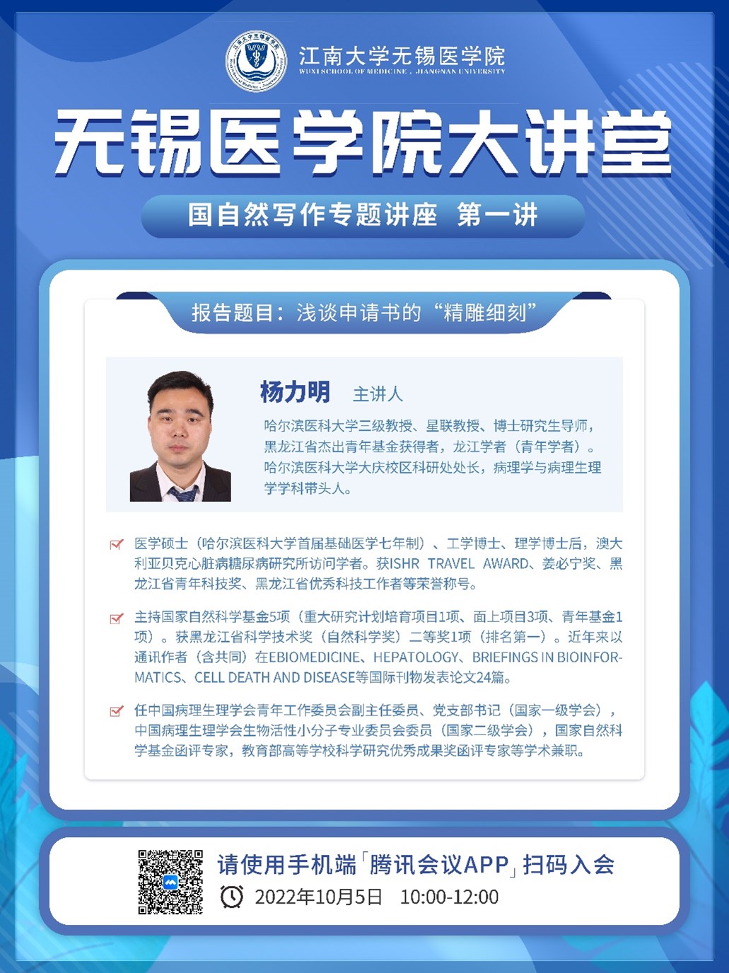 研讨地点:无锡医学院C101和腾讯会议