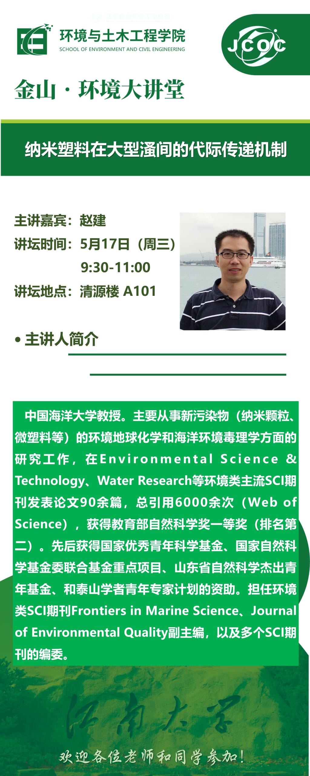 地点 清源楼A101 短标题 金山·环境大讲堂(第10讲):纳米塑料在大型溞间的代际传递机制