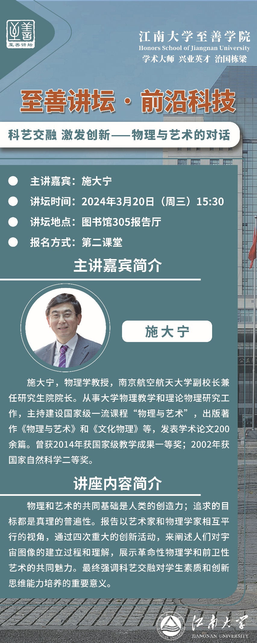 讲坛主题:科艺交融 激发创新——物理与艺术的对话