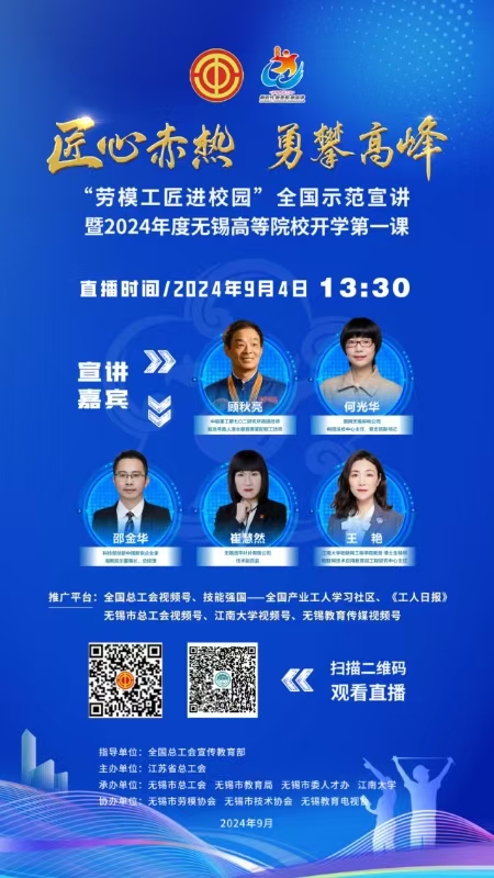 匠心赤热勇攀高峰——“劳模工匠进校园”全国示范宣讲暨2024年度无锡高等院校开学第一课