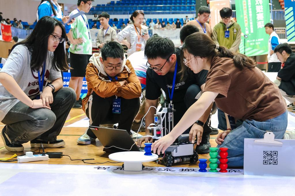 4月19日至20日,大赛进入实战竞赛阶段。比赛现场,选手们摩拳擦掌,工程场景数字化仿真、生活垃圾智能分类装置、太阳能电动车、智能物流搬运竞相展示。在新能源车赛道现场,温差电动车参赛团队正在进行最后的调试。“我们的小车采用轻量化设计以及使用ai算法仿真运行轨迹,尽可能减少能量损耗,达到最大行驶距离。”来自江南大学的参赛选手介绍道。智能物流搬运赛区,机器人穿梭往来,精准完成货物识别、抓取和运输;生活垃圾智能分类赛项中,智能分类系统展现出惊人的识别准确率;智能救援赛项则模拟各救援场景,考验机器人复杂环境下对救援目标高效搜索、安全转运能力。虚拟仿真赛道比赛中,工程场景数字化赛项选手们运用数字孪生技术构建逼真工程场景;企业运营仿真赛项则通过模拟真实商业环境,考查学生的系统决策能力。