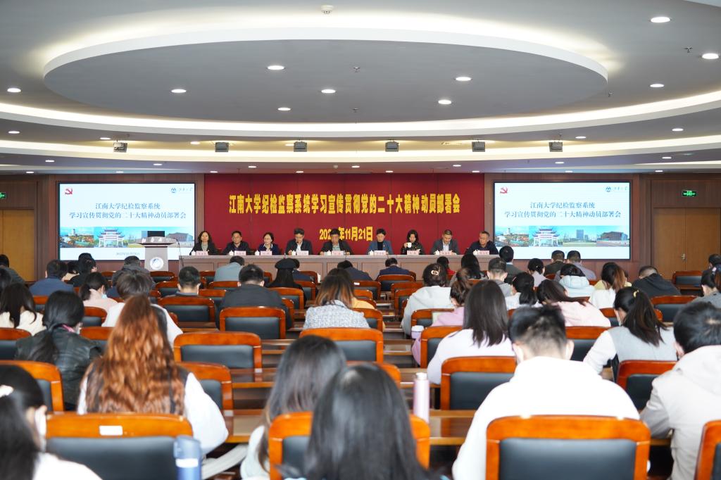 校党委副书记、纪委书记刘淼作动员讲话。刘淼指出,党的二十大是在全党全国各族人民迈上全面建设社会主义现代化国家新征程、向第二个百年奋斗目标进军的关键时刻召开的一次十分重要的大会,具有重大划时代意义、重要里程碑意义。刘淼强调,要把学习宣传贯彻党的二十大精神作为当前和今后一个时期的首要政治任务,从战略和全局高度完整、准确、全面把握党的二十大精神,着力在“八个深入学习领会”上下功夫,即深入学习领会党的二十大的重大意义,深入学习领会党的二十大的主题,深入学习领会过去五年工作和新时代十年伟大变革的重大意义,深入学习领会习近平新时代中国特色社会主义思想的世界观和方法论,深入学习领会以中国式现代化全面推进中华民族伟大复兴的使命任务,深入学习领会对未来五年党和国家各项事业发展的战略部署,深入学习领会以党的伟大自我革命引领伟大社会革命的重要要求,深入学习领会发扬斗争精神、增强斗争本领、坚持团结奋斗的时代要求。刘淼要求,纪检监察干部要以高度的责任感使命感抓好党的二十大精神学习宣传贯彻,深刻把握党的二十大作出的战略部署,认真对标对表全面从严治党新部署新要求,结合纪检监察工作实际,贯通学习领会,坚决抓好落实,持之以恒推动全面从严治党取得新成效,以高质量纪检监察工作护航学校高质量发展新征程。