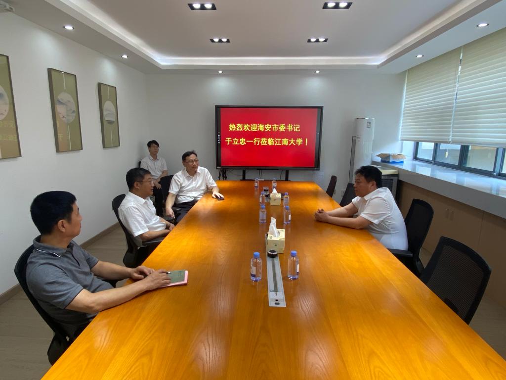 8月3日上午,海安市委书记于立忠一行来校调研。校党委副书记戴月波,校党委常委、副校长吴正国参加座谈交流。