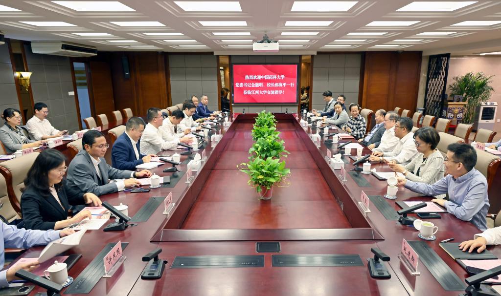 10月7日,中国药科大学党委书记金能明、校长郝海平带队,副校长姚和权、齐炼文、杨勇,校长办公室、人事处、科学技术处等负责人一行来校交流调研。校党委书记朱庆葆,校长陈卫,校党委常委、副校长顾正彪、张影陆,党委研究生工作部、研究生院院长吴小俊,校长办公室主任黄敏,科学技术研究院院长东为富,人力资源处处长、人才工作办公室主任赵建新,生命科学与健康工程学院党委书记史志洪,发展规划与学科建设处副处长董玉明参加座谈。座谈会在行政楼B305会议室召开。会议由张影陆主持。
