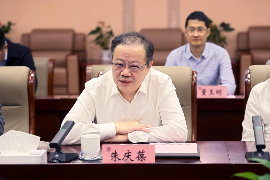 朱庆葆首先致欢迎辞,他对中国药科大学各位领导的到来表示欢迎,并对中国药科大学长期以来对我校的关心支持表示感谢。他指出,长期以来两校之间交流联系紧密,在学科交流、科研合作、人员往来等各个方面都结下了深厚情谊,此次中国药科大学班子一行来校调研指导,对于丰富合作内涵、共谋创新发展都会产生重要作用。希望两校进一步加强沟通,共同为提高高等教育建设质量、为服务国家创新驱动战略和经济社会发展作出更大的贡献。
