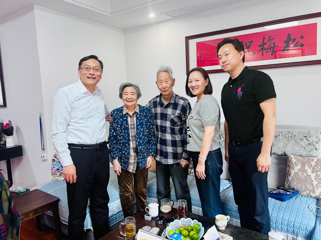 重阳节前夕,校党委领导走访慰问学校老领导老同志代表,向离退休老领导老同志们致以节日问候和美好祝愿。10月17日下午,校党委书记吴正国前往中国工程院院士伦世仪先生家中拜访,为伦世仪及夫人送上重阳节祝福。