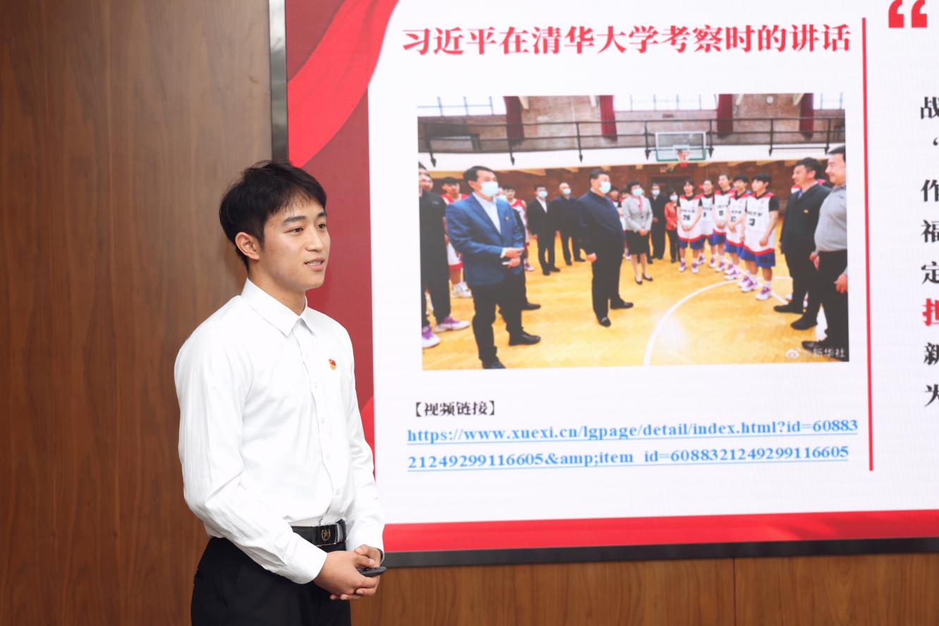 党支部组织委员、食科2004班本科生应迪琛领学《习近平总书记的青年观》。他从学习背景、重要论述、未来展望等三个方面带领在座师生认真学习了习近平总书记关于青年和青年工作的一系列重要讲话精神,希望同学们都能不负总书记的殷殷嘱托,成为有理想、敢担当、能吃苦、肯奋斗的新时代好青年。