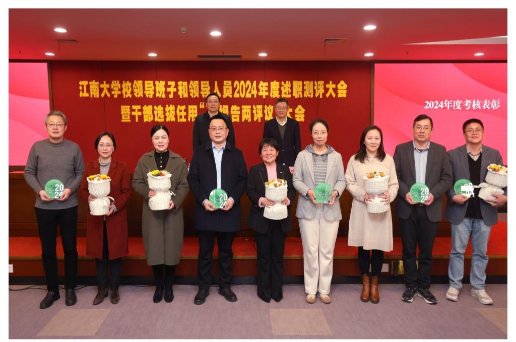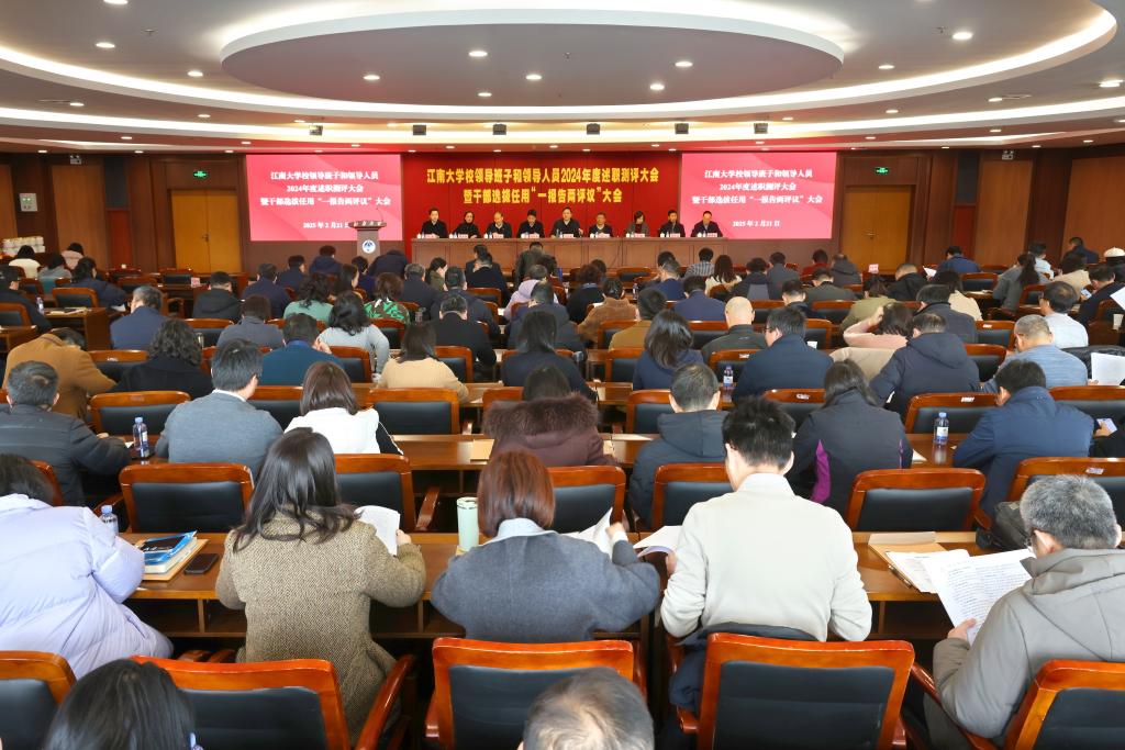 2月21日下午,江南大学校领导班子和领导人员2024年度考核大会暨干部选拔任用“一报告两评议”大会及新学期工作部署会在图书馆五楼报告厅召开。全体校领导、党委常委,校党委委员、纪委委员,中层干部及其他方面代表参加了会议。会议由校党委书记吴正国主持。