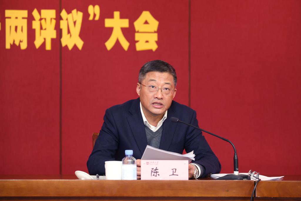 吴正国代表学校党委作领导班子年度工作述职。他指出,2024年,学校党委紧紧围绕“教育强国,江南何为”的时代命题,推动全校上下同题共答,坚持不懈用习近平新时代中国特色社会主义思想铸魂育人,推动立德树人开拓新局,紧扣教育科技人才等领域一体发展,推动改革创新蓄势聚能,贯彻落实党委领导下的校长负责制,推动校园治理提质增效,一以贯之推进全面从严治党,推动党的建设赋能发展,学校各项事业不断开创新局面。随后,吴正国、陈卫等9位校领导班子成员围绕德、能、勤、绩、廉等方面,依次进行了个人述职。