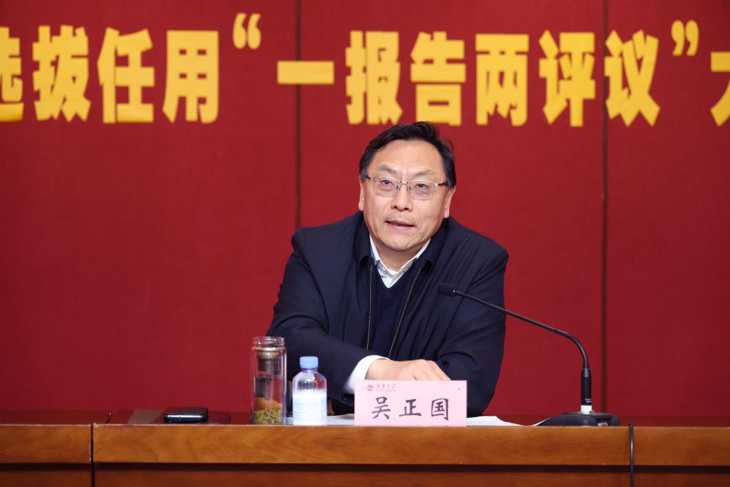 吴正国代表学校党委报告了2024年度干部选拔任用工作情况。他指出,学校党委高度重视干部队伍建设,严格按照上级决策部署,围绕事业发展需求,科学规范开展干部选拔任用工作。2024年,学校党委坚持以政治建设为统领,积极树立鲜明选人用人导向,有力拓宽培养锻炼路径,持续深化对干部的全方位管理和经常性监督,不断提升选人用人工作质量。下一步,学校党委将进一步强化政治引领,系统筹谋班子队伍建设,着力激发干部担当作为、干事创业的积极性、主动性和创造性,为学校奋进再登高提供有力支撑。