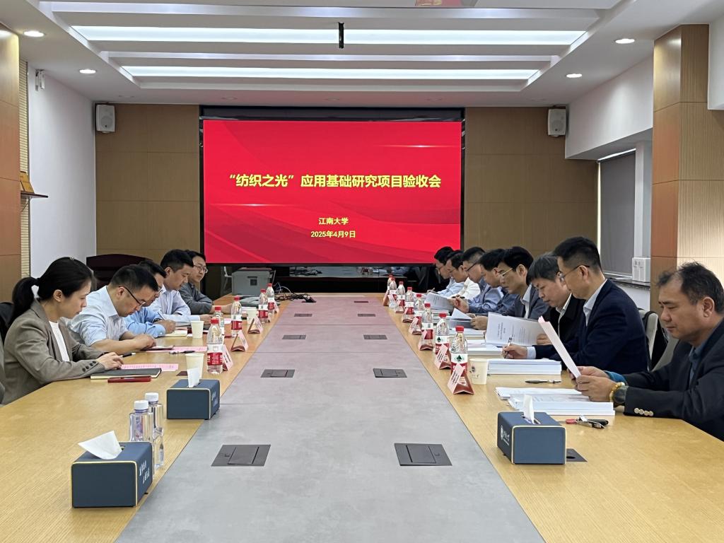 4月9日,由中国纺织工业联合会组织、纺织之光科技教育基金会资助的“纺织之光”中国纺织工业联合会应用基础研究项目验收会在江南大学纺织科学与工程学院顺利召开。“纺织之光”科技教育基金会书记陈志华、中国纺织工业联合会科技发展部主任张传雄、科技发展部处长王宁、江南大学纺织科学与工程学院院长付少海、科研院副院长柏玉香参加会议。评审专家包括浙江理工大学徐伟强教授、东华大学王先锋教授、上海工程技术大学辛斌杰教授、江苏阳光集团有限公司曹秀明教授级高工、宿迁杜为新材料科技有限公司郭海洋高工。会议由王宁主持。
