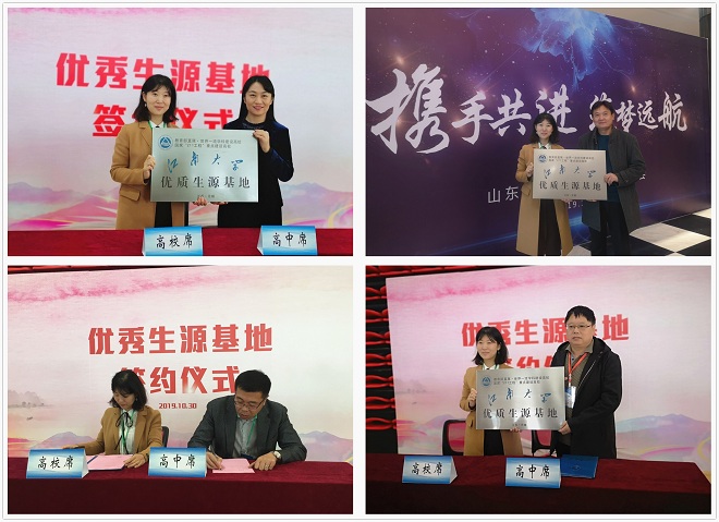 10月19-20日,四川招生组曾向红、张明亮老师赴成都市参加四川省“高校与中学现场交流会”,并代表我校与成都市石室中学和四川大学附属中学2所中学签订“优质生源基地”合作协议;10月30日,山东招生组于沛沛老师赴济南市参加“山东高校与中学战略合作联盟第四届会议”,并代表我校与山东省实验中学、山东师范大学附属中学、寿光现代中学、淄博第一中学、昌邑第一中学和龙口第一中学共6所中学签订“优质生源基地”合作协议;11月6日-8日,浙江招生组吴志明、汤继忠老师赴宁波市参加“2019全国高校、中学升学交流研讨会”,并代表我校与宁波市鄞江中学、诸暨市第二高级中学、湖州市练市中学和余姚市第二中学共4所中学签订“优质生源基地”合作协议。截止目前,我校优质生源基地已达214所。