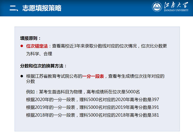 江南大学本次“志愿填报指导”直播讲座,旨在让考生和家长对于新高考改革政策有了更清晰的认识,对于志愿填报方式方法有了更系统的了解。想考生之想,答考生之疑,解考生之忧,江南大学致力于为每一位考生和家长做好高考招生服务工作,助力考生高考圆梦、金榜题名!
