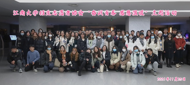 11月25日晚,江南大学招生志愿者协会联合江南大学图书馆、食品学院烘焙俱乐部共同举办“奋战青春,感恩温暖”主题活动,为考研的学姐学长们送去祝福明信片,并向宿管阿姨和门卫大叔赠送亲手制作的爱心甜点。