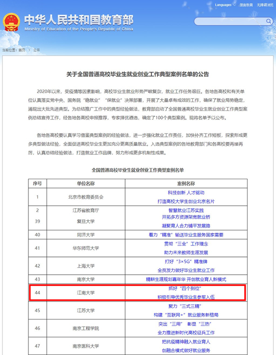 日前,教育部公布了首批100个高校毕业生就业创业工作典型案例,我校报送的《抓好“四个到位” 积极引导优秀毕业生参军入伍》成功入选。
