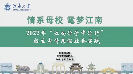 情系母校,鼋梦江南!每一位参与中学行社会实践的江南学子都代表着江南大学的形象与气质。希望各位同学以饱满的热情、积极的态度让学弟学妹们感受江南学子风采,体会江南大学温情,激励中学生们努力学习、奋战高考,以青春之名,赴江南之约。
