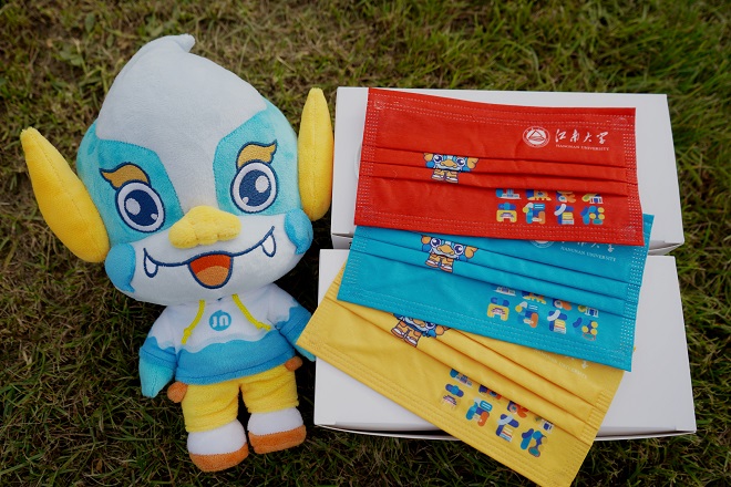 高考祝福口罩,正面印有江南大学本科招生吉祥物小鼋,一方面,“鼋”的使命护佑一方水土,寓意疫情当下,实现2022“平安高考”;另一方面,“鼋”的精神蕴含勇于拼搏、奋发向上、坚韧执着、辉煌灿烂,寓意高考学子奋勇争先,“鼋”梦成真。祝福口罩还印有学校2022年本科招生宣传主题标识“江”遇良才,“南”得有你,体现江南大学对广大优秀学子的热情与期盼。