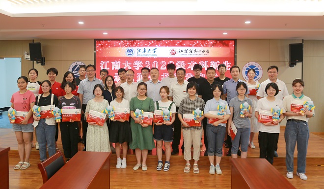 陈卫指出,江南大学是我们家门口的好大学,今年学校录取天一学子的专业涉及食品学院等11个学院,录取分布在临床医学等16个专业。其中11个专业为国家级一流本科专业,5个专业为省级一流本科专业,国家级、省级一流本科专业覆盖率100%,有响应“健康中国”国家发展战略的软科世界排名第一的食品科学与工程、食品质量与安全专业;有“北清华、南江大”“设计界的黄埔军校”之美称的工业设计专业;与无锡大力共建发展的临床医学专业,与“智造中国”国家发展战略与无锡产业集群相契合的物联网工程、微电子科学与工程、人工智能等。江南大学与天一中学有着长久的战略合作关系,江南大学也将不断深化“双高”合作,向天一学子完全开放科技资源,努力共谱育人华章。2021年,江南大学制定十年“奋进计划”,为实现学校跻身世界一流大学建设行列的中长期愿景,造就更强的学科、更强的人才、更强的师资,在此邀请各位新同学,永葆天一的气质和精神,四年后,希望有机会给在座的21位同学亲自颁发“江南大学校长特别奖”,这是江南大学学生最高荣誉奖项,希望同学们为我们共同的美好未来踔厉奋进,奋勇争先!