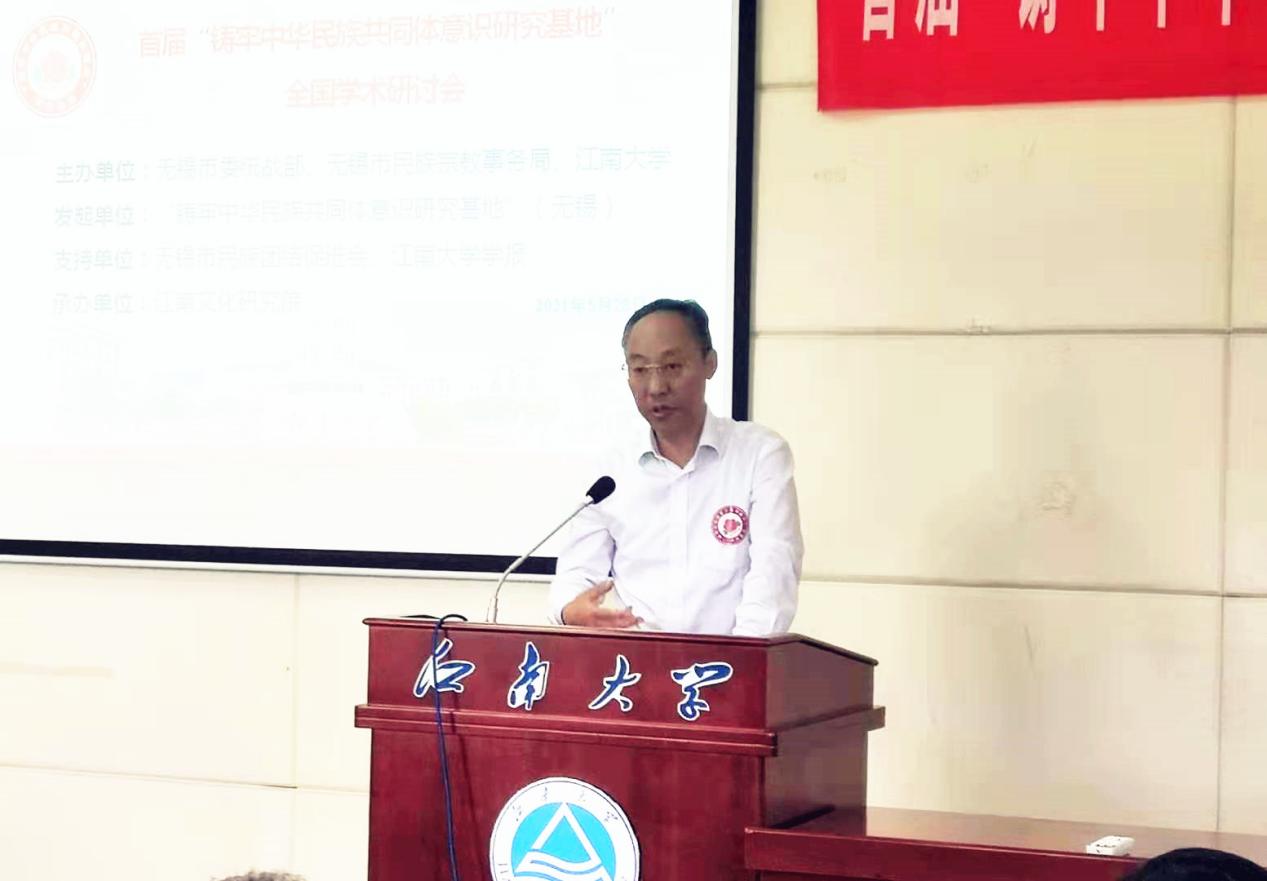 近日,由无锡市委统战部、市民宗局和我校共建的铸牢中华民族共同体意识基地举办了首届学术研讨会。国家民委协调推进司智库处处长刘元如,江苏省民宗委副主任邓飞,江南大学校长助理张光生,无锡市委统战部副部长、市民宗局局长施正洲以及来自全国各地的专家学者参加了本次研讨会。会议开幕式由江南大学党委常委、党委办公室主任、党委统战部部长朱飞主持。