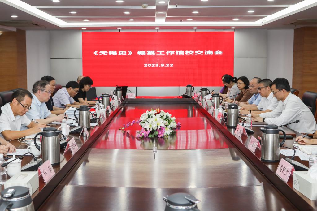 为认真贯彻落实市委十四届五次会议的指示精神,积极推进《无锡史》的编纂工作,9月22日,《无锡史》编纂工作馆校交流会在无锡市档案史志馆312会议室举行。江南大学党委书记、《无锡史》总编朱庆葆,无锡市档案史志馆党组书记、馆长张曙峰,江南大学历史研究院副院长刘大禹、马克思主义学院副院长刘俊杰,《无锡史》各卷主编及编纂团队部分人员、无锡市档案史志馆领导班子及相关处室负责人共同出席座谈,会议由市档案史志馆副馆长吴刚主持。