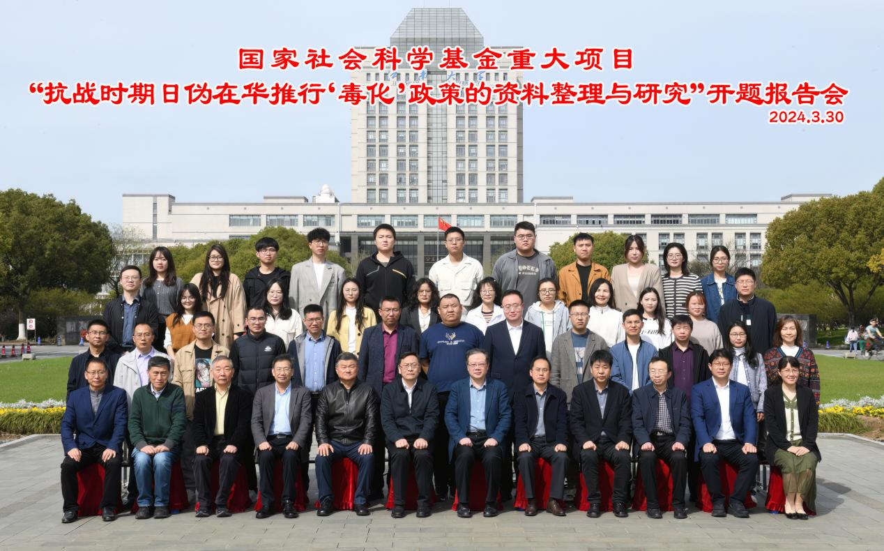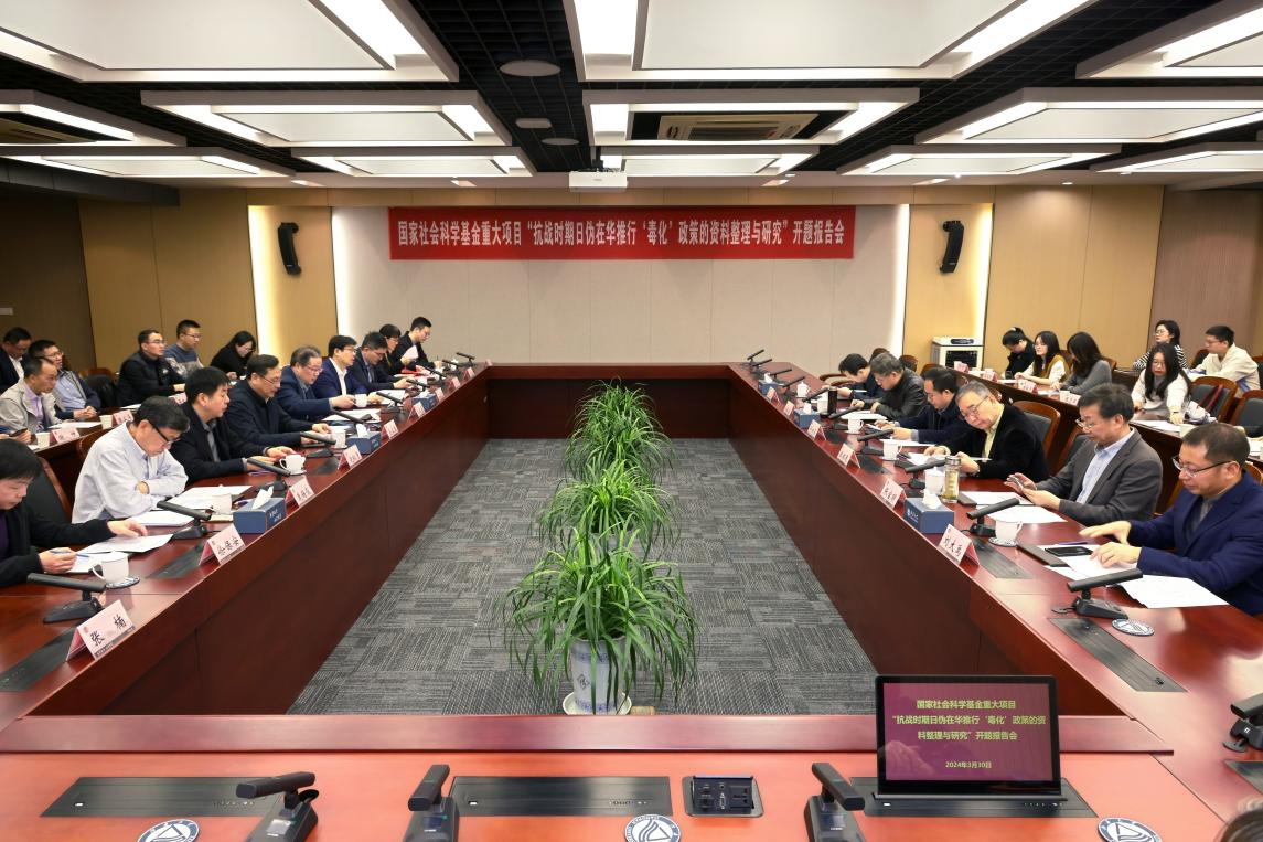 3月30日,由江南大学历史研究院院长朱庆葆教授担任首席专家的国家社科基金重大项目“抗战时期日伪在华推行‘毒化’政策的资料整理与研究”在江南大学举行开题报告会。江南大学党委书记吴正国,江南大学党委常委、副校长倪松涛,江苏省哲学社会科学规划办公室主任许佃兵,江南大学社会科学处处长王建华,江南大学马克思主义学院院长侯勇,以及浙江大学、南京大学、河南大学、中国第二历史档案馆、日本大东文化大学等单位的多位专家学者参与研讨。会议由倪松涛主持。