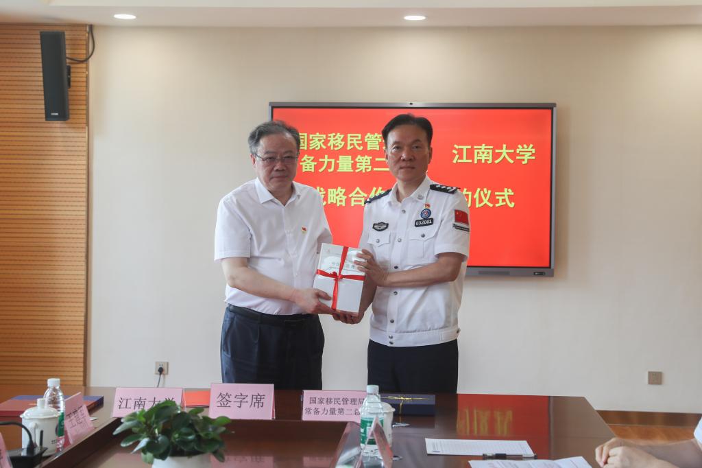 为深入学习贯彻习近平新时代中国特色社会主义思想,全面落实党的二十大精神,7月13日,国家移民管理局常备力量第二总队与江南大学在昆明签订战略合作协议。总队党委书记、总队长张晓冬,总队党委委员、副总队长李国宏、任洪川、高莉等领导,江南大学党委常委、副校长顾正彪,江南大学原党委书记、历史研究院院长朱庆葆,历史研究院及马克思主义学院教师代表出席签约仪式。仪式由常备力量第二总队党委委员、副总队长高莉主持。