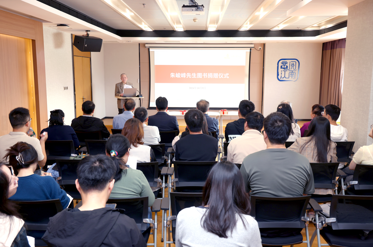 10月9日下午,朱峻峰先生图书捐赠仪式暨见面会在我校图书馆三楼鼋元空间举行。江南大学党委常委、副校长倪松涛,中共中央《求是》杂志社原副总编朱峻峰先生及其夫人陈晓娟女士,苏州市委宣传部原副部长、文汇报驻江苏办事处原主任朱金龙,江南大学历史研究院院长朱庆葆,马克思主义学院党委书记李凤梅,图书馆、档案馆馆长陈敬华,历史研究院副院长刘大禹,图书馆副馆长孙颖等师生代表参加捐赠仪式。第一阶段捐赠仪式由陈敬华主持,第二阶段见面会由李凤梅主持。