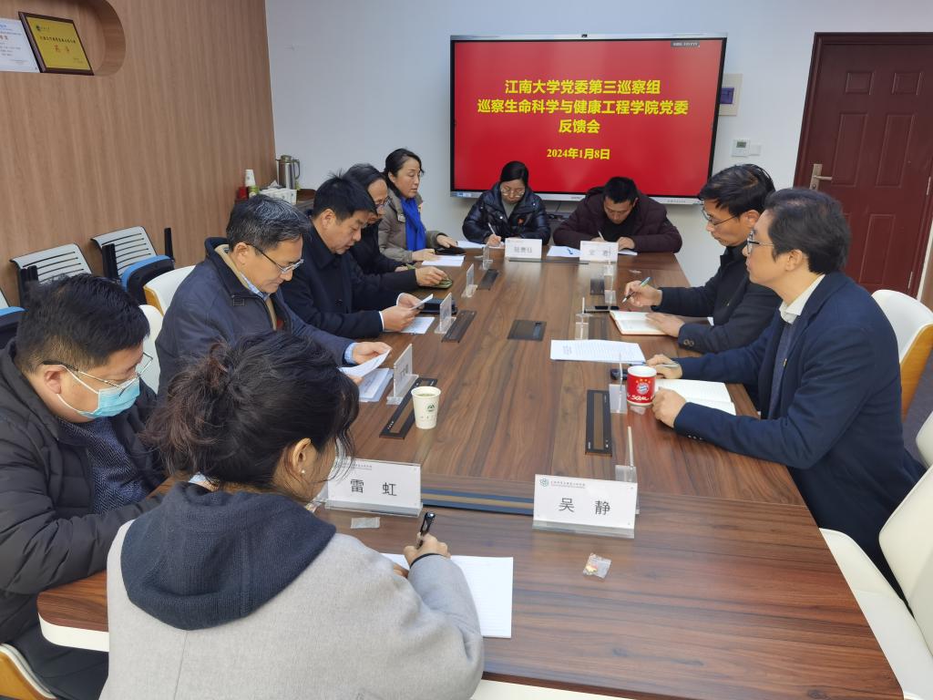 党委第三巡察组向生命科学与健康工程学院党政主要负责人反馈会现场