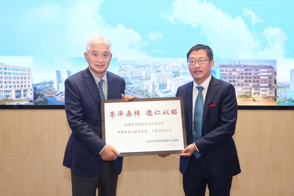 朱庆葆向荣智健以及荣氏家族长期以来为江南大学创办和发展作出的支持和贡献表达感谢。他指出,荣氏家族于1947年创办私立江南大学,不仅开创了国内第一批食品工业系,学科脉络延续至今,为今日江南大学攀登世界一流食品学科高峰奠定始基。江南大学将传承弘扬实业报国精神,践行“大食物观”科技创新,全面提升江南大学的办学水平和影响贡献。