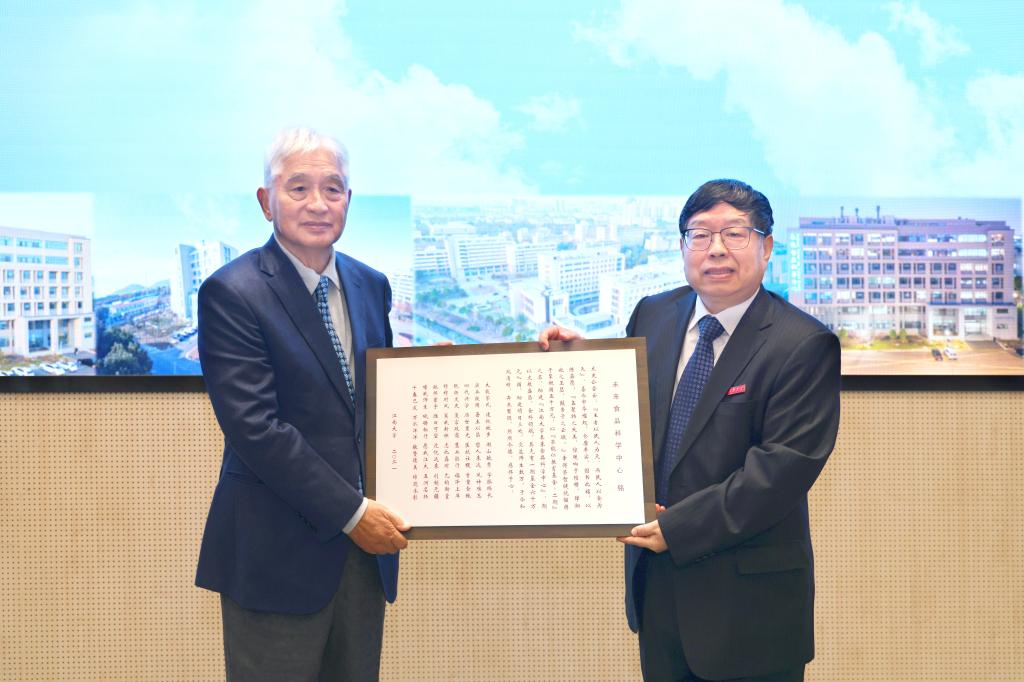 陈坚向荣智健颁授未来食品科学中心铭记留念牌