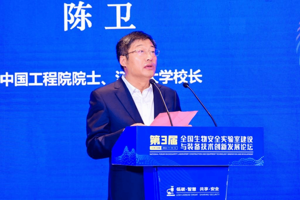 首先,中国工程院院士、江南大学校长陈卫致欢迎辞。他强调,生物安全是国家安全体系的重要组成部分,以生物安全实验室建设与装备技术创新为代表的新技术领域发展受到前所未有的重视。作为突发公共卫生应急事件等科研的重要支撑体系,对于维护公众生命健康、维系经济发展与社会稳定起着关键性作用。