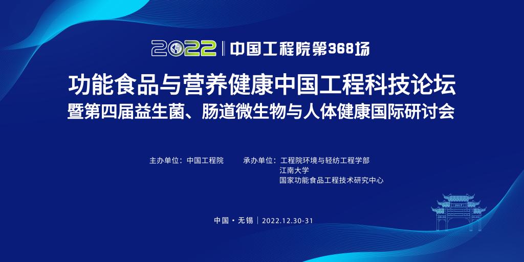 12月30-31日,由中国工程院主办,工程院环境与轻纺工程学部、江南大学、国家功能食品工程技术研究中心承办的中国工程院第368场功能食品与营养健康中国工程科技论坛暨第四届益生菌、肠道微生物与人体健康国际研讨会在云端举办。本次论坛设有“功能食品与营养健康中国工程科技论坛”,“第四届益生菌、肠道微生物与人体健康国际研讨会”和“Engineering前沿论坛:膳食、菌群与健康研讨会”。