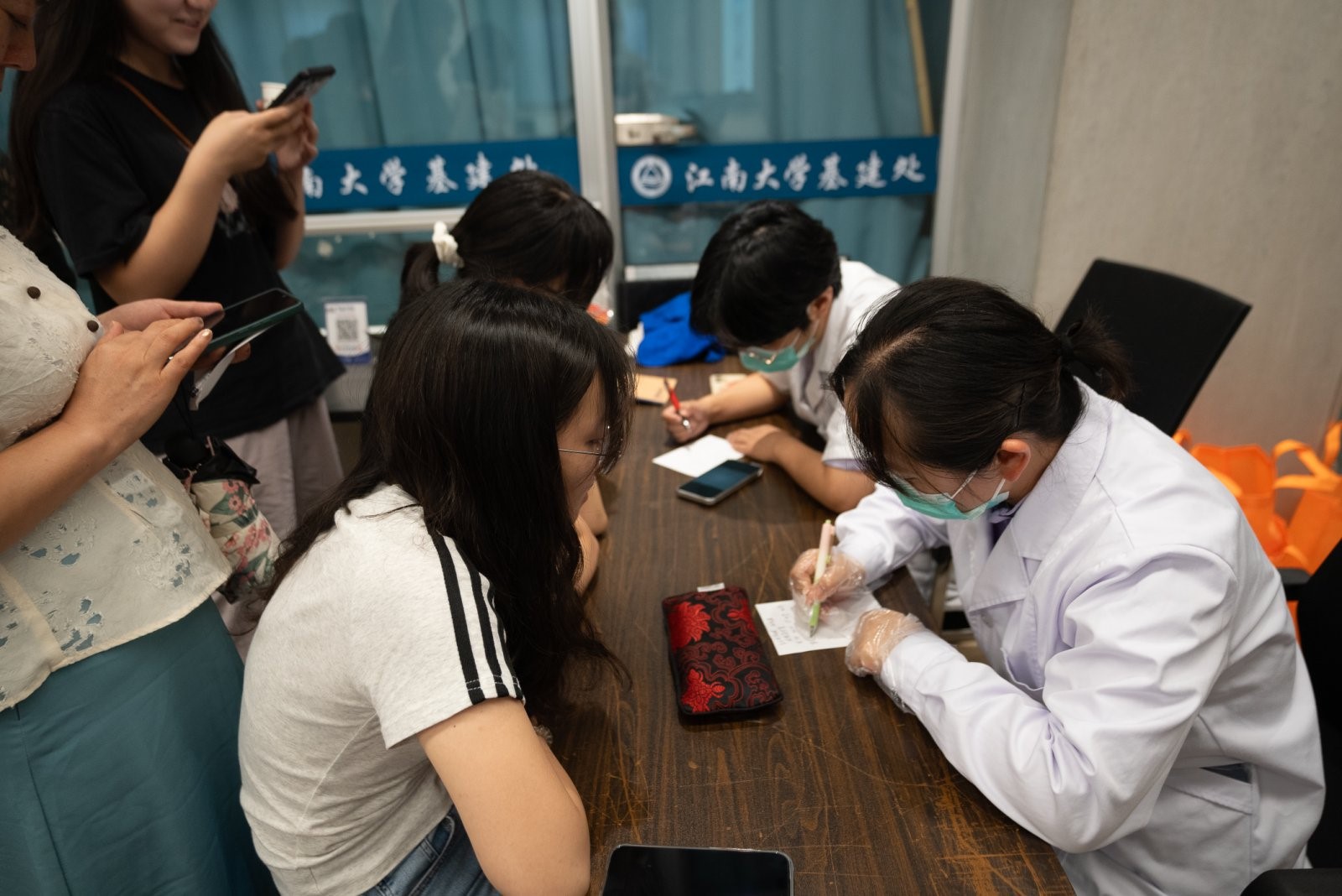 活动现场设置了丰富的互动体验区。师生们品鉴了北京同仁堂特供的国潮养生茶饮,如酸梅汤、荷叶山楂茶等,在感受独特风味的同时,也体会到其清热解暑、健脾消食的养生功效。专业中医团队为参与者提供体质辨证服务,并据此提供涵盖饮食、运动、作息等方面的个性化健康建议。师生们还免费体验了耳穴压豆、血压检测以及智能健康管理平台小程序体质评估服务。智能平台通过先进技术生成详细体质报告,为健康管理提供科学依据。活动结束后,参与者领取了定制茶包及健康礼品,将健康理念延伸至日常生活。