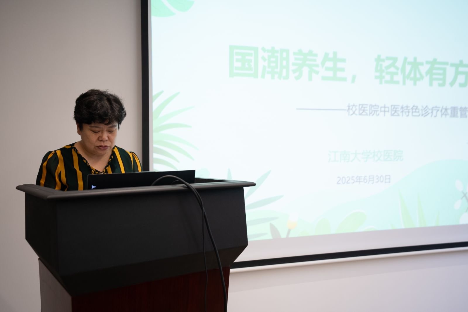 活动由校医院院长叶军主持。叶军指出,在全民健康意识提升的大背景下,“科学减重”与“中医养生”的结合碰撞出独特的火花。校医院积极响应时代需求,在多校区同步开展体重管理月活动,旨在将传统中医底蕴与现代健康理念有机融合,营造积极健康校园氛围,助力师生树立科学健康观,掌握有效减重方法。她介绍,自校医院启动中医特色诊疗服务两个月以来,成效显著,已累计开展体质辨证120人次,实施耳穴压豆治疗近600人次,在体重管理、失眠调理及内分泌调节等方面积累了宝贵经验。