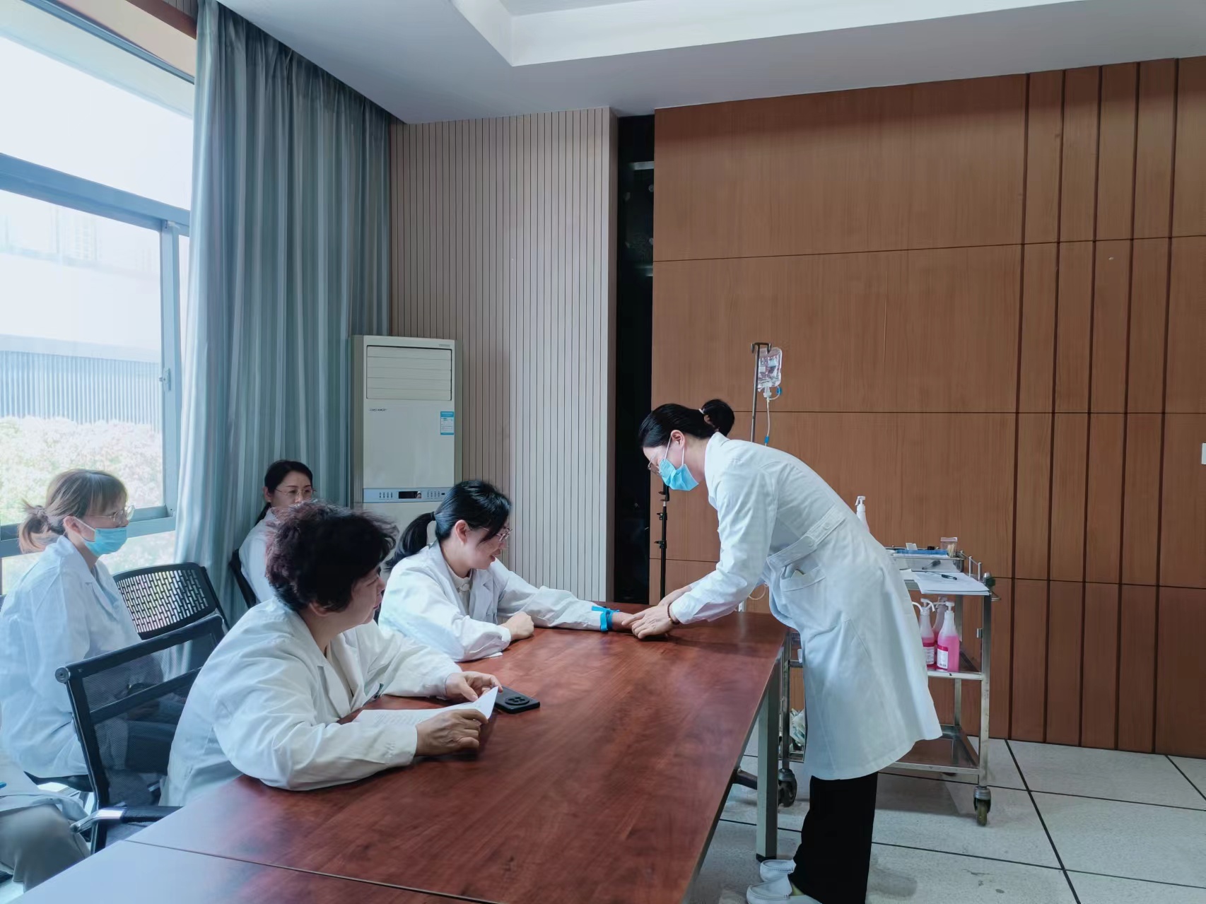 随后,校医院护士长蒋佳燕进行了静脉输液的标准流程操作示范。她凭借丰富的经验和精湛的技术,赢得了在场医护人员的阵阵掌声。这一环节不仅展示了护理人员的专业技能,也激发了大家相互学习、共同进步的热情。
