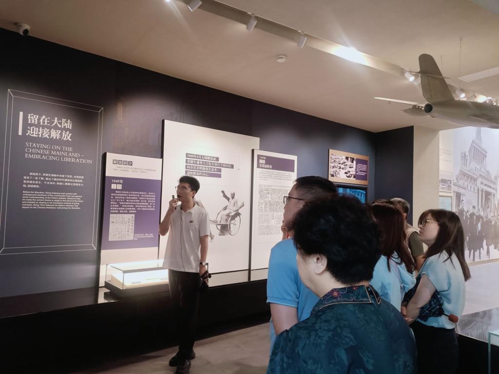 党员们在“荣毅仁生平年表”前合影