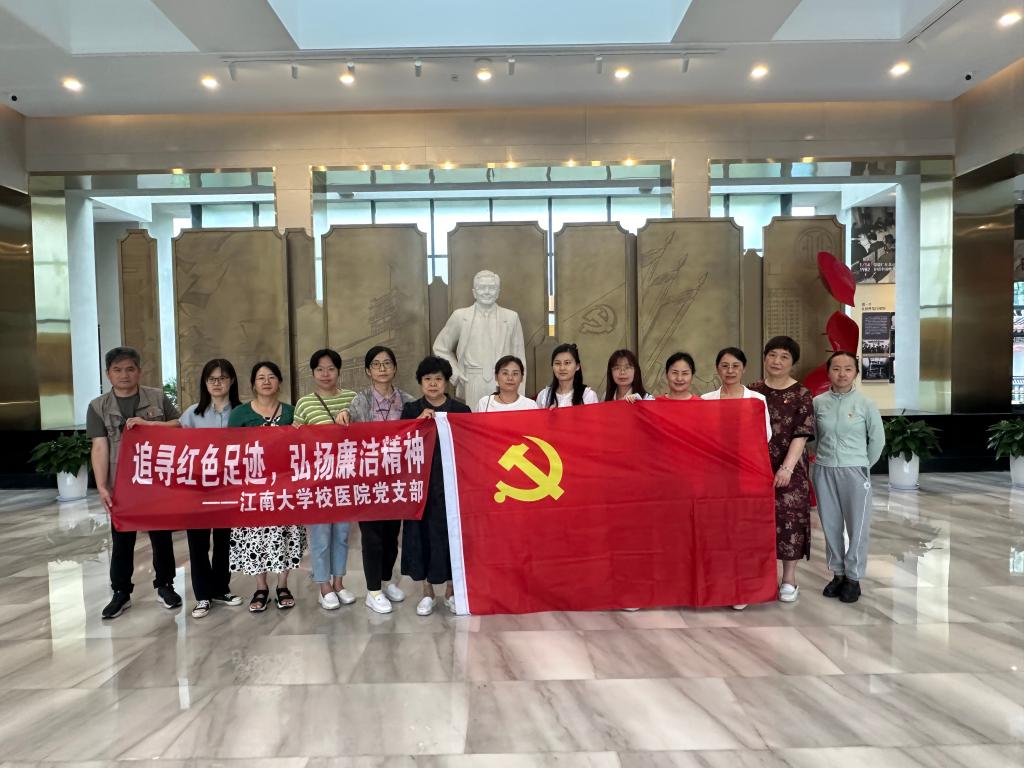为深入贯彻习近平新时代中国特色社会主义思想,全面领会党的二十大精神,高质量开展党纪学习教育。6月26日下午,校医院党支部组织全体党员赴无锡市荣毅仁纪念馆,开展了“追寻红色足迹,弘扬廉洁精神”主题党日活动。此次活动旨在引领党员同志们增强纪律意识,锤炼坚强党性,进一步弘扬廉洁自律的精神风貌。后勤党委委员、基建处处长方俊,校医院院长叶军参加活动。
