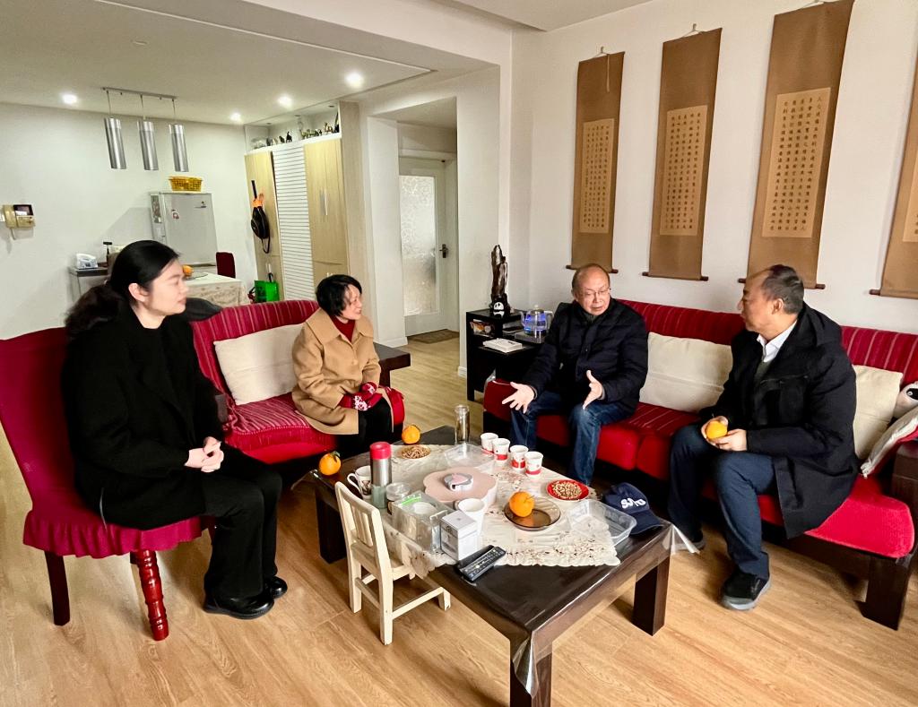 2月5日,校党委常委、党委统战部部长朱飞,副部长蒋艳,校侨联副主席曾向红等一行走访看望了中国工程院院士伦世仪教授、江南大学原校长陶文沂、原江南大学校长程志翔以及设计学院首任院长张福昌教授等侨界老领导老专家,与老同志们促膝长谈、共话新春,衷心祝愿他们马年安康、福寿绵长。走访中,一行人详细询问老领导老专家的身体状况和生活近况,悉心倾听他们的心声与期盼,一同回顾老同志们为学校学科建设、事业发展和侨务工作作出的辛勤付出与卓越贡献。
