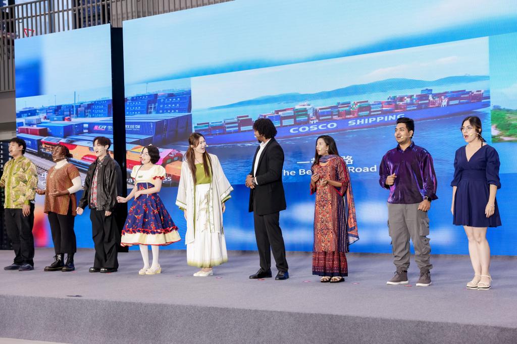 颁奖现场,我校中外青年学生代表携手演绎了歌曲《美美与共》,让现场观众一起在中西和鸣的旋律中游江南、爱中国,在音乐和故事中见时代、见世界。