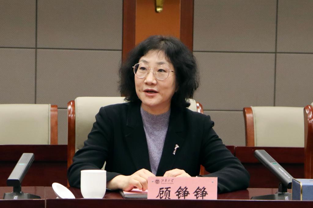蒋艳在汇报中介绍了学校民族团结工作的经验模式和具体做法。近年来,学校以立德树人为根本任务,以铸牢中华民族共同体意识为民族工作主线,依托市校共建铸牢中华民族共同体意识研究基地,对内延伸团结稳定之翼、对外延伸支持援助之翼,围绕国家战略、民族交融、立德树人三大重点,全面做好民族地区帮扶、民族文化平台建设、民族学生培养工作,形成了“一载体两延伸三重点”全系统立体化的民族团结工作模式,在教育载体、文体平台、理论研究等方面开展了大量扎实的工作,形成了具有江南大学特色的工作品牌和特色做法。