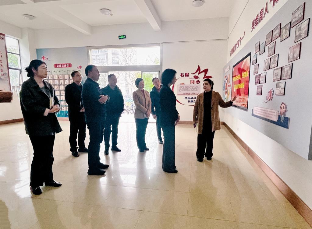 顾铮铮在讲话中介绍了本次调研工作的背景,并对江南大学民族团结进步工作表示充分的肯定。本次调研是根据市政协年度重点调研计划,就“促进我市各民族融合发展”开展的专题调研活动。会上,理学院党委副书记、副院长董小平,人工智能与计算机学院辅导员麦日帕提·马热木分别介绍了少数民族预科班、56齐民族协会的相关情况。调研组成员还就民族团结进步典型选树、预科生教育培养、社团文化活动等方面进行了交流。会前,调研组一行实地考察了理学院石榴树育人工作室。