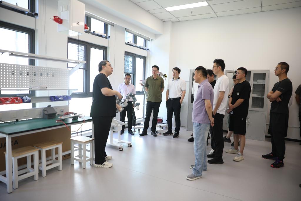 座谈会前,青阳镇青年商会一行实地参观了智能制造学院(君远学院)、数字科技与创意设计学院。