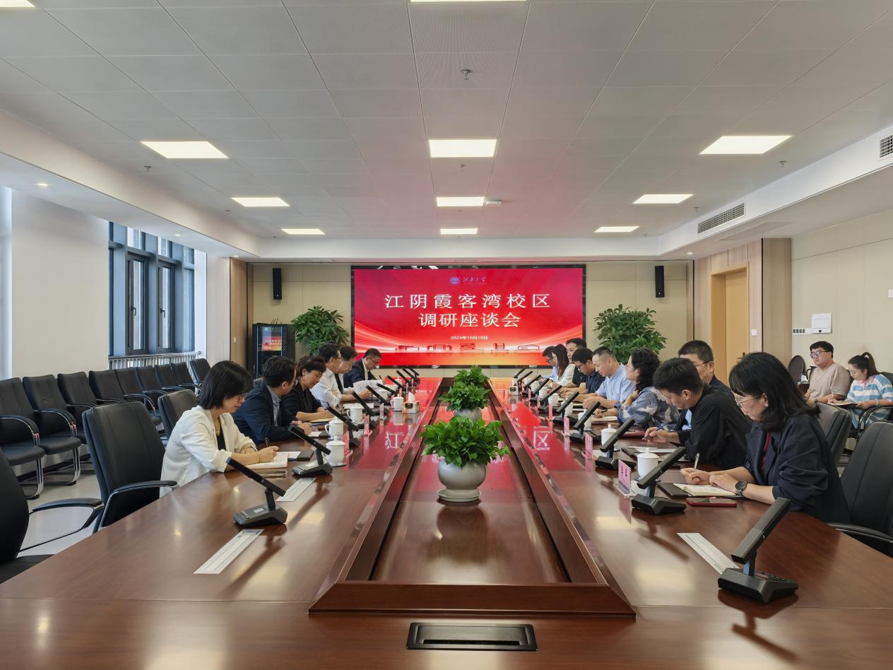 10月10日下午,校党委书记吴正国带队赴江阴霞客湾校区调研工作。党委办公室、学生工作处、教务处、后勤管理处、江阴校区管理办公室及相关学院主要领导参加座谈。