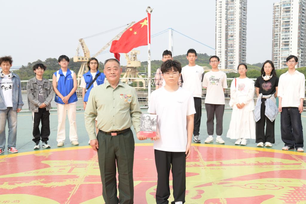 “远望精神不是博物馆里的标本,而是如同‘五四精神一样’流淌在我们血脉中的基因。”在船舶驾驶室,微电子2303“远望号”特称团支部代表黄昊同学汇报了支部一年来的工作,希望2024级学弟学妹们将“远望精神”传承好、发扬好,在日常学习和生活中共同创造新团支部的骄傲。他以“00后”视角解读了“爱国、进步、民主、科学”的爱国主义精神,并号召新时代的广大青年同学们用担当书写未来,在传承并发扬宝贵精神财富的过程中做出自己的实干,汇聚属于新一代青年人的发展力量。