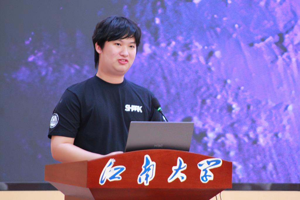 学生分享环节,来自集成电路学院的王子坚同学分享了从科研小白到发表3篇高水平论文的进阶之路,提出“锚定初心—阶梯式实践—动态平衡”的成长方法论,为新生提供了宝贵的科研实践建议。智能制造学院郭兰鑫同学介绍了从零组建SHARK机器人战队的经历,这支仅成立半年的队伍凭借7000次测试的坚持,最终冲进RoboMaster联盟赛八强,彰显了江南学子敢想敢拼敢闯的青春态度。数字科技与创意设计学院的研究生唐京媛和陆玮琳同学分享了“手指上的中国”实践团的非遗保护故事,团队通过纪录片拍摄、文旅IP设计、乡村美育课堂等多种形式,助力苗绣、侗族大歌等非遗项目焕发新生。