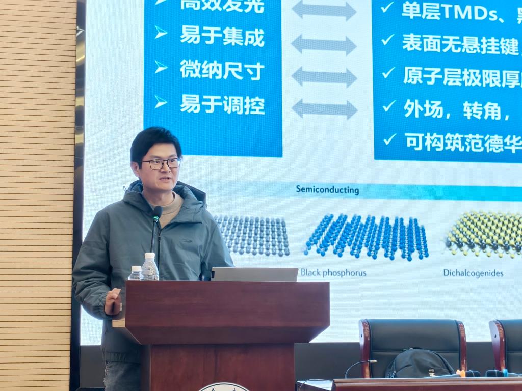 王俊勇以“二维半导体可调谐发光材料与器件”为报告主题,循着“物性探索—技术革新—应用赋能”的主线,系统阐述了该领域的发展脉络、核心挑战与前沿突破。他指出,半导体微纳光源器件是通信、显示等信息领域的核心支撑,而传统光源器件存在偏振固定、发光效率受限等瓶颈,二维半导体凭借室温下激子主导发光的独特物性,成为突破技术瓶颈的关键方向。